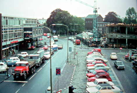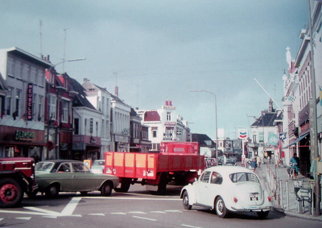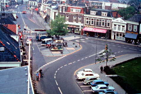 Brinkstraat in the 1960s vs. 2007. In the old we have plenty of car parking, traffic lights, wide road junctions. Now it's a virtually traffic free area with very wide cycle lanes, pleasant terraces and more trees.